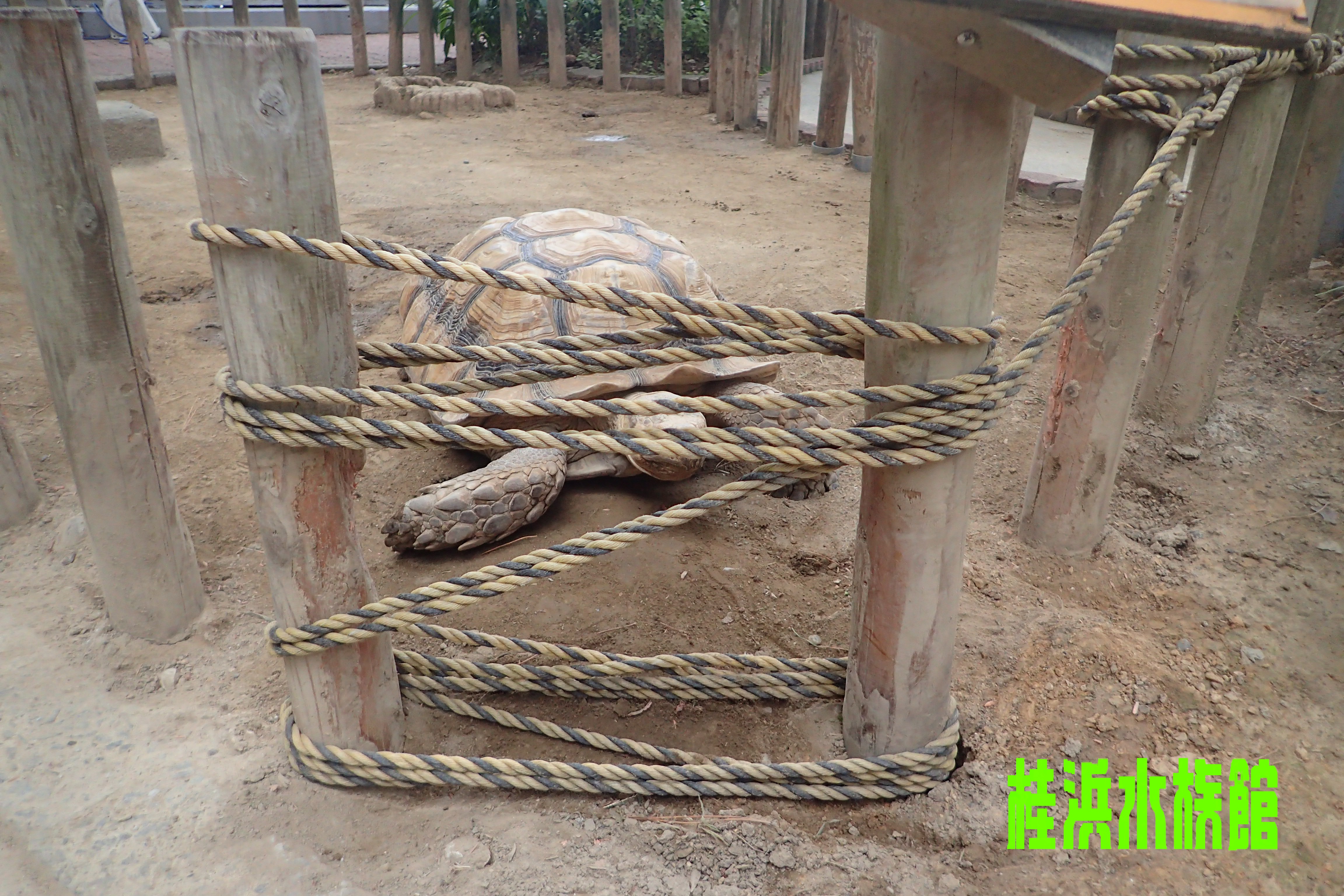 当館で、飼育しているリクガメはいつも脱走を企てており、木の杭にアタックをしかけています。