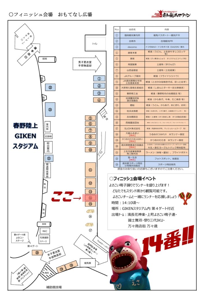 フィニッシュ地点の春野陸上競技場では、桂浜水族館も飲食ブースを出店。