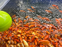 水族館の入り口でお出迎えするのがこのドクターフィッシュ!!水槽に手を入れると、魚たちが寄ってきて、手の古い角質を食べてくれるよ!!